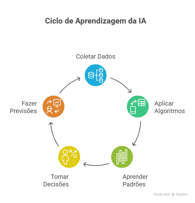 - Aprendizagem por Reforço: O sistema aprende por tentativa e erro, recebendo “recompensas” por boas decisões e “penalizações” por más escolhas.