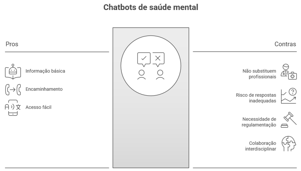 Para os profissionais que lidam com situações de saúde mental, o resultado dos estudos sugerem a necessidade de integrar a literacia em IA no trabalho clínico e educativo com adolescentes, perguntando explicitamente sobre o uso de chatbots e outros recursos digitais quando se avaliam ideação suicida e comportamentos de risco.