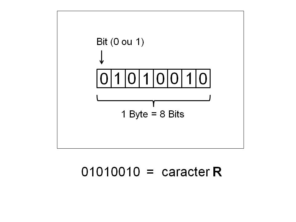 Assim 1 byte equivale a 8 bits